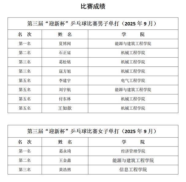 此次迎新乒乓球比赛的成功举办,为同学们提供了释放青春活力、展现自我风采的广阔舞台,学生在比赛中深刻领悟并践行了奋勇拼搏、团结合作、追求卓越的体育精神,为今后的学习与生活注入了强大精神动力