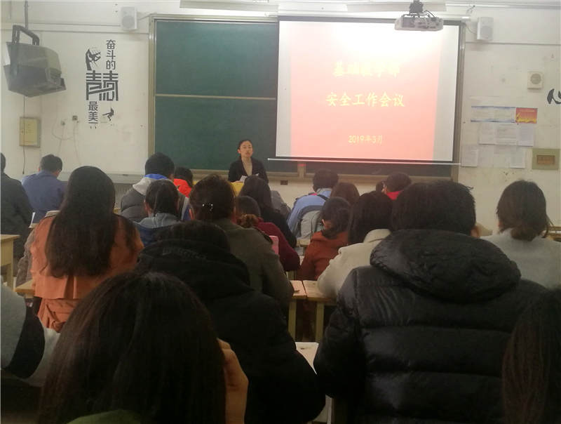 为深入贯彻山东华宇工学院安全工作会议要求,全面做好2019年我部安全稳定工作,3月22日下午,基础教学部在10号教学楼213教室召开2019年度安全工作会议,基础教学部副主任李琦、副主任刘兖峰、各教研室主任及教师参加了会议。会议由副主任李琦主持。