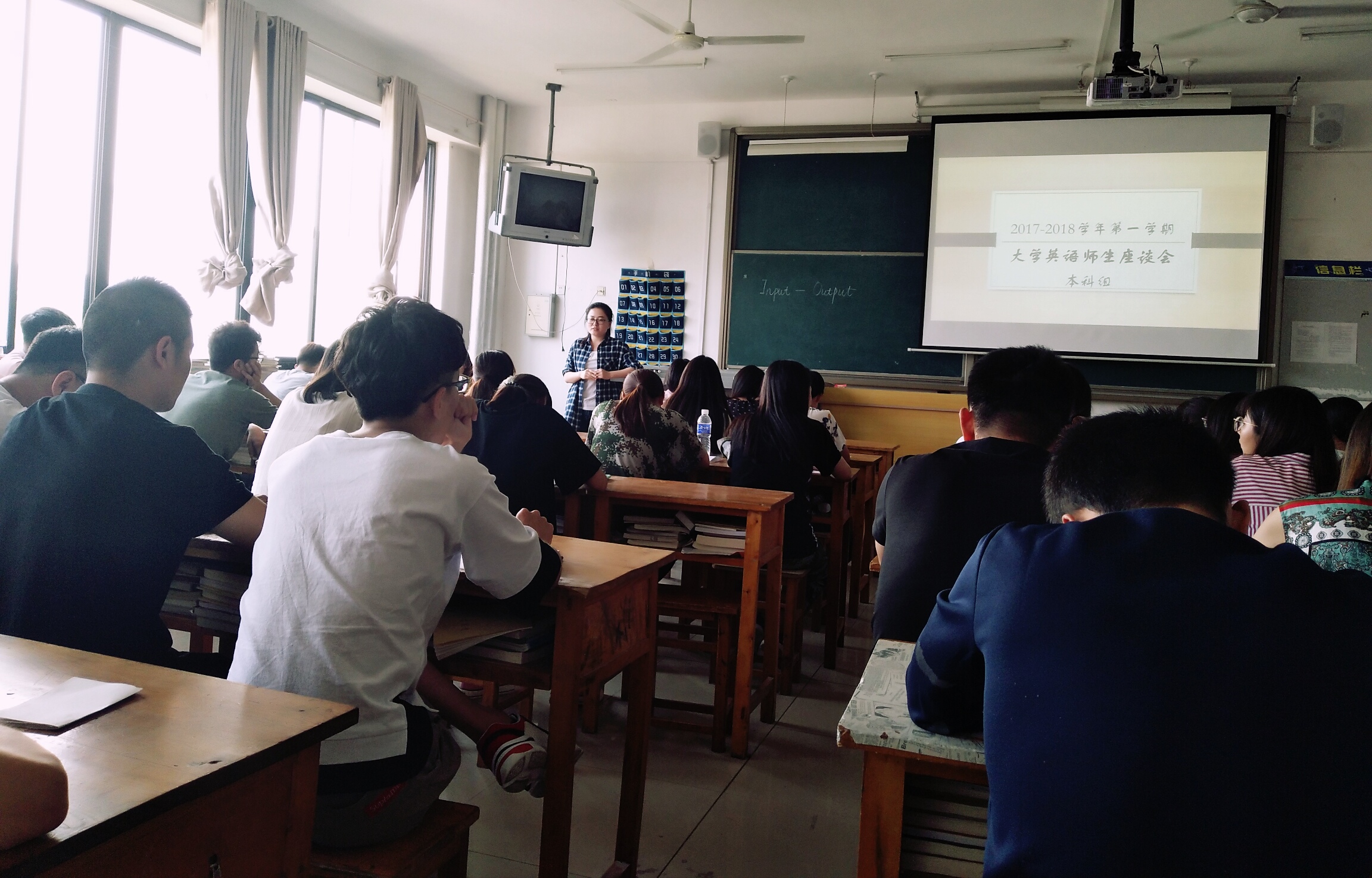交流会上,各会场主持教师向大家介绍了此次座谈会召开的目的及目前大学英语教学现状,通过师生对话,加强彼此交流沟通。在本次座谈会上,各位同学畅所欲言,结合本班实际将学习及生活中所遇到的困惑与问题向老师汇报。就学生的提问内容,在座老师们都认真进行解答并为同学们在如何攻克语法、提高阅读能力及词汇积累等方面给出中肯建议。在会上,与四六级备考有关的相关话题引起了师生们的一致重视。李主任表示,大学英语四六级是大家必须攻克的难关,虽然会遇到不少的困难,但遇到困难我们自有对策。我部针对这一问题制定了教学与学生层面的双重对策:在教学层面,计划在将四六级辅导在大学英语授课中进行渗透;在学生层面,为学生推荐四六级参考书目及相关真题,使学生提前熟悉考试,形成积极主动的学习风气。