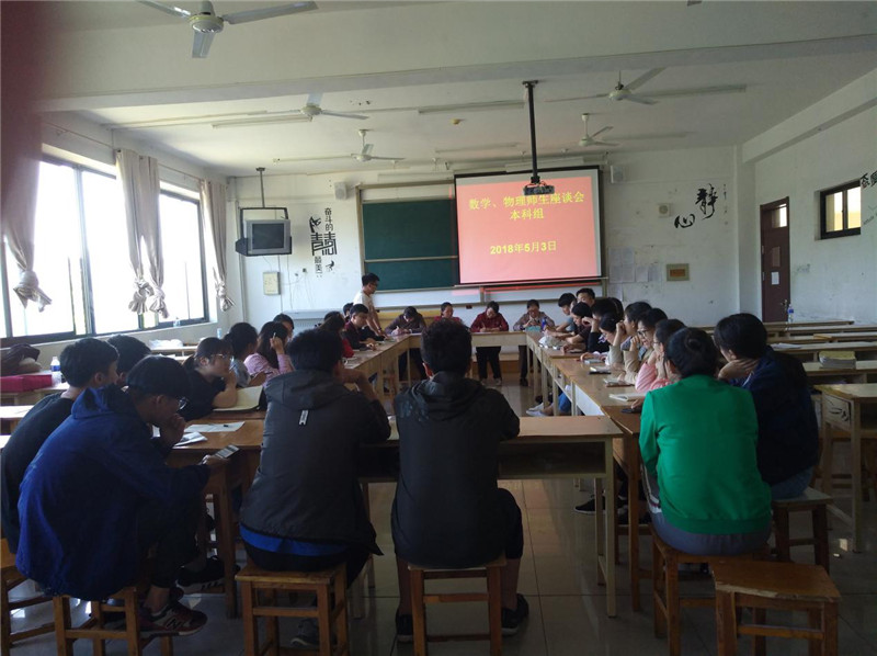 为更深入地了解同学们数学学习现状,更好地促进数学教学,数学教研室于5月4日及5月7日下午4时30分分别在10号楼213、410、411召开了期中师生交流座谈会。此次座谈会分别由各层次备课组长主持召开,数学教研室各层次任课教师及来自各专业年级学生代表参加了此次座谈会。