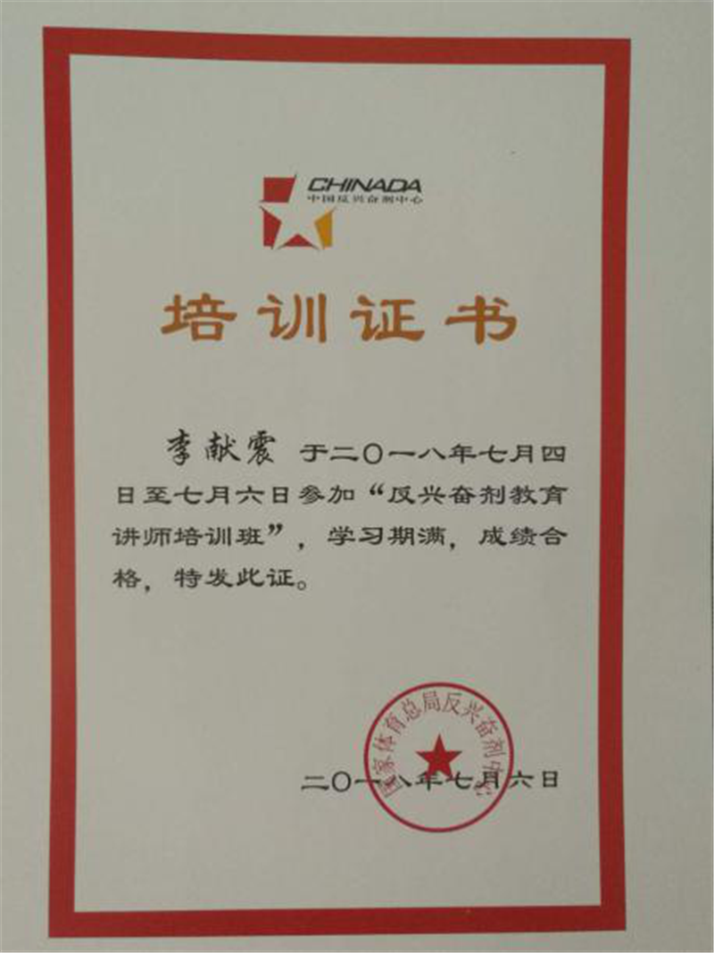 按照国家体育总局2018年反兴奋剂教育工作要求,为积极获得山东省第十四届大学生运动会参赛资格,切实提高运动员的反兴奋剂意识和能力,山东华宇工学院选派李献震老师参加了7月4日至6日在济南举办的山东省高校反兴奋剂教育讲师培训班。