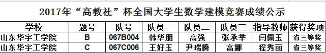 2017年 11月6日,全国大学生竞赛山东赛区组委会公示了2017年全国大学生数学建模竞赛成绩。威廉官网共获得本科组山东省三等奖1项,高职组山东省三等奖1项。