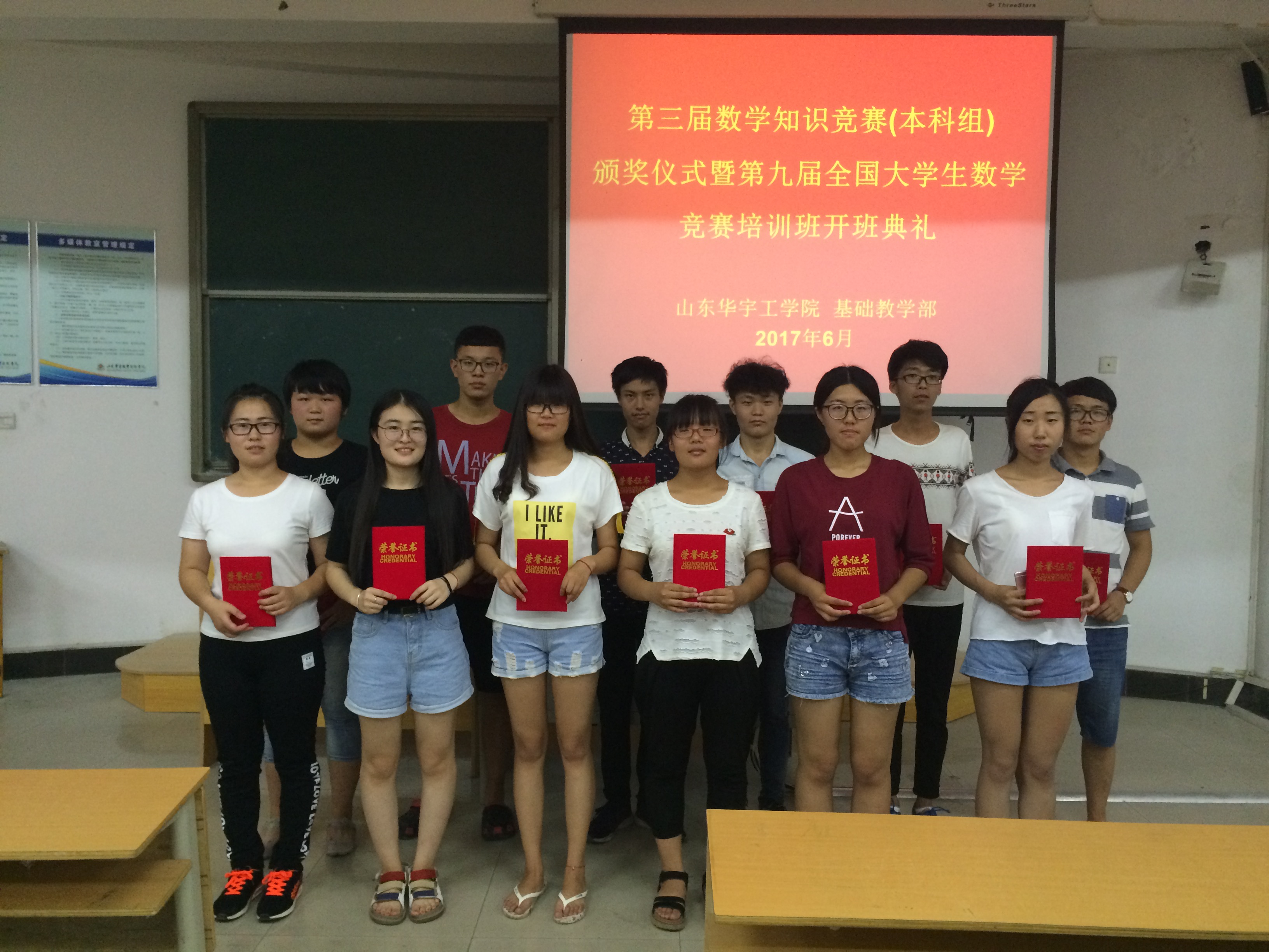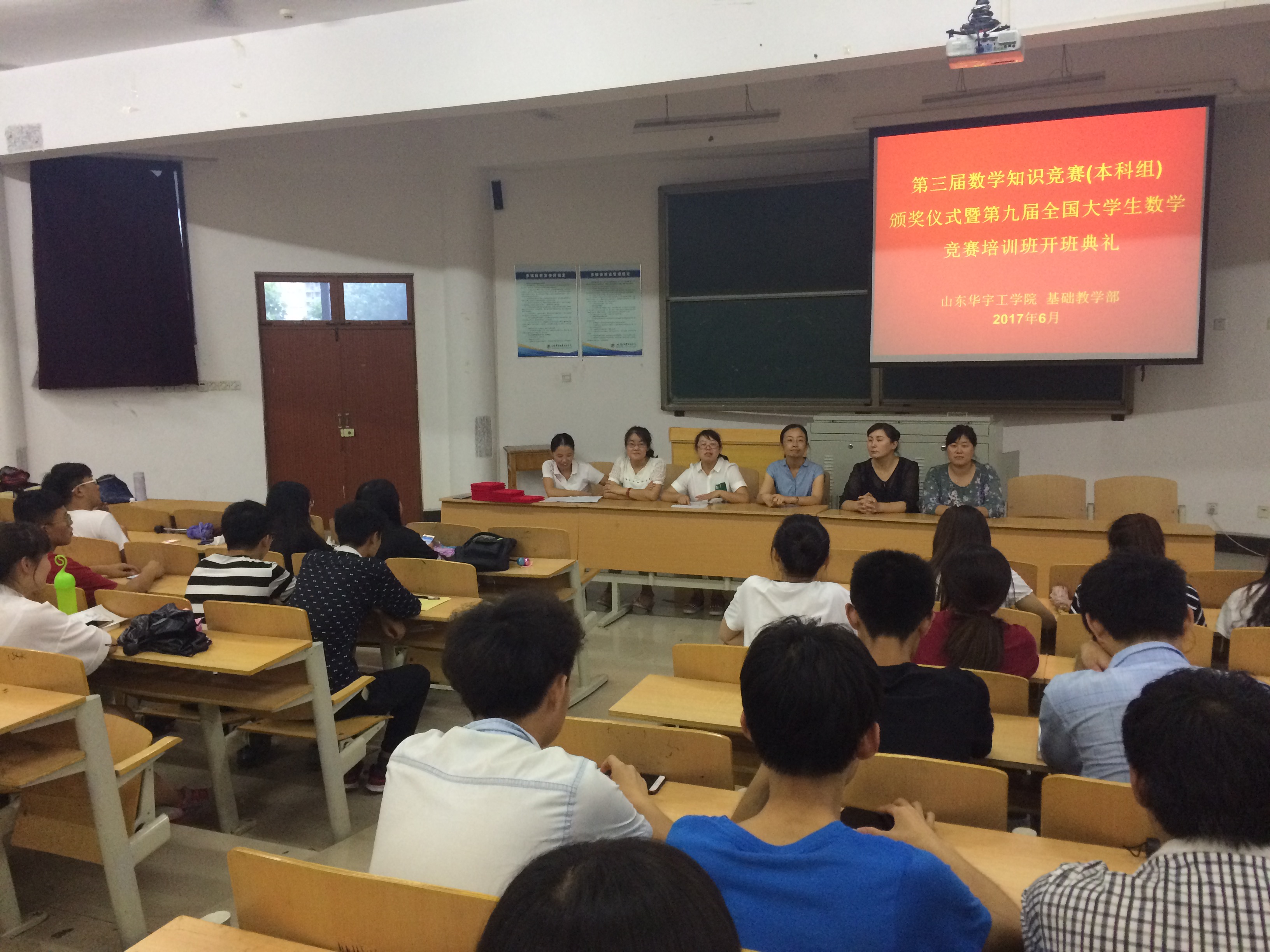6月21日,山东华宇工学院第三届数学知识竞赛(本科组)颁奖典礼暨第九届全国大学生数学竞赛培训班开班仪式在10号楼F301隆重举行。本次活动由基础教学部数学教研室相关老师及参加培训的50名学生参加。特邀基础教学部李琦主任出席。