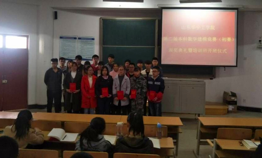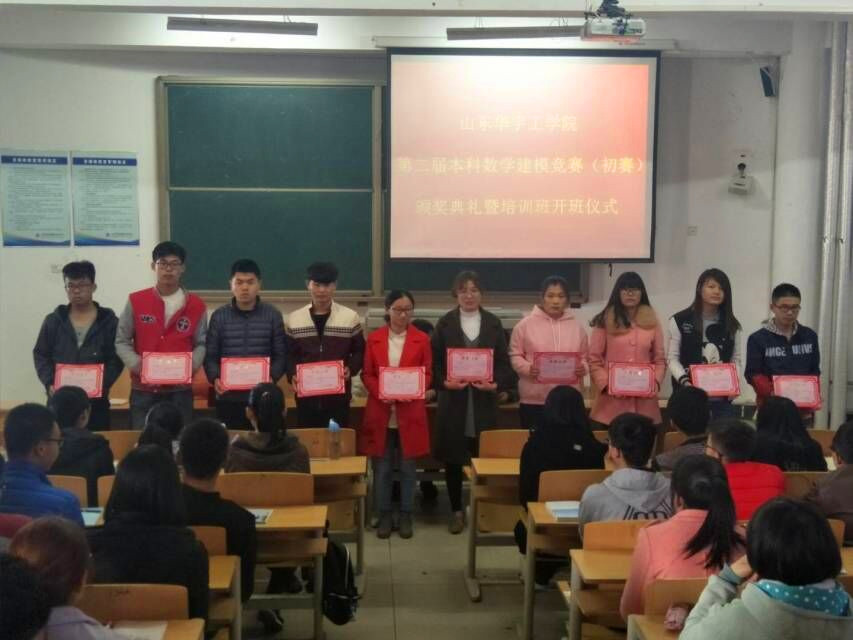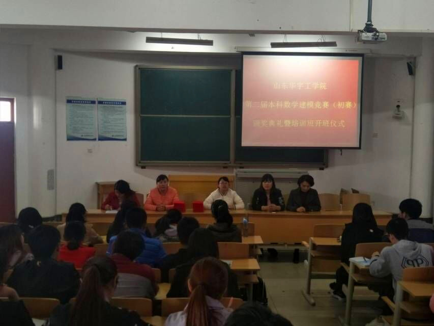 2017年3月8日下午,威廉官网第二届本科数学建模竞赛(初赛)颁奖典礼暨数学建模培训班开班仪式在10号楼F301隆重举行。基础教学部数学教研室相关老师及通过初赛的65名学生参加了此次活动。