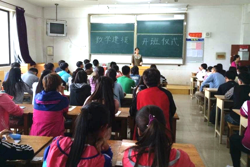 开班仪式上,首先,程秀丽老师宣读本次培训名单及培训方案。然后,由2015年全国大学生数学建模竞赛国家二等奖获得者王艺翔同学做建模学习经验交流。最后,各位老师分别阐述了数模的重要性及在建模活动中同学们主观能动性的重要作用,同时对2016年数模培训班的新成员寄予了殷切希望,并对他们提出了具体要求。