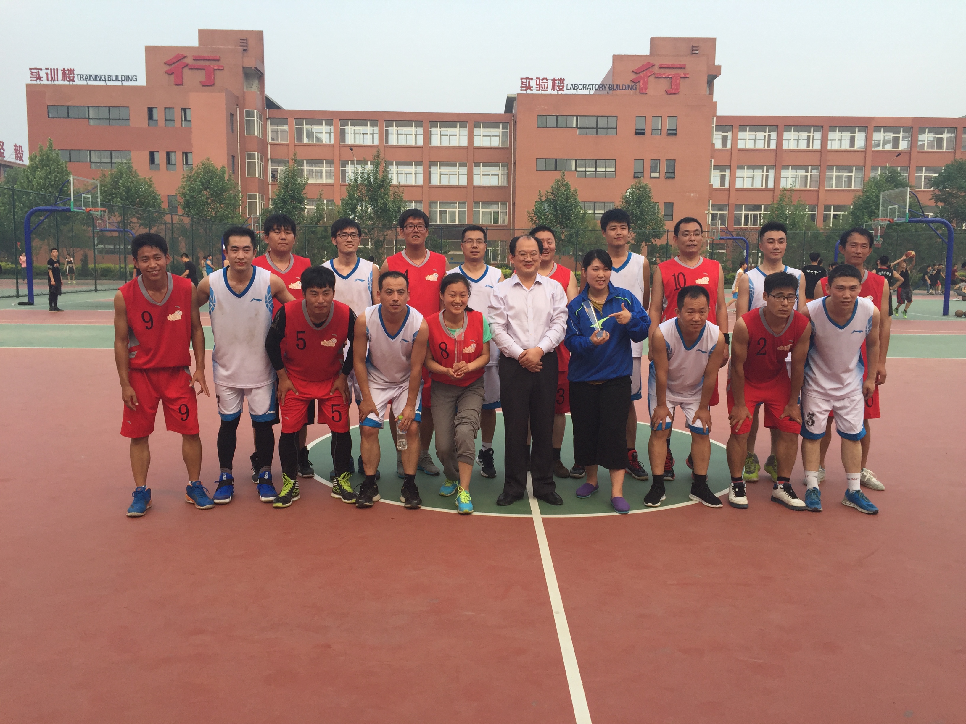 5月5日下午,威廉官网2016年首届教职工篮球联赛在历时8天的比赛后圆满落幕,当日在进行完冠亚军决赛后,举行了简单而庄重的闭幕式。常务副校长梁玉国与冠亚军球队队员一一握手表示祝贺,并与球队合影留念。