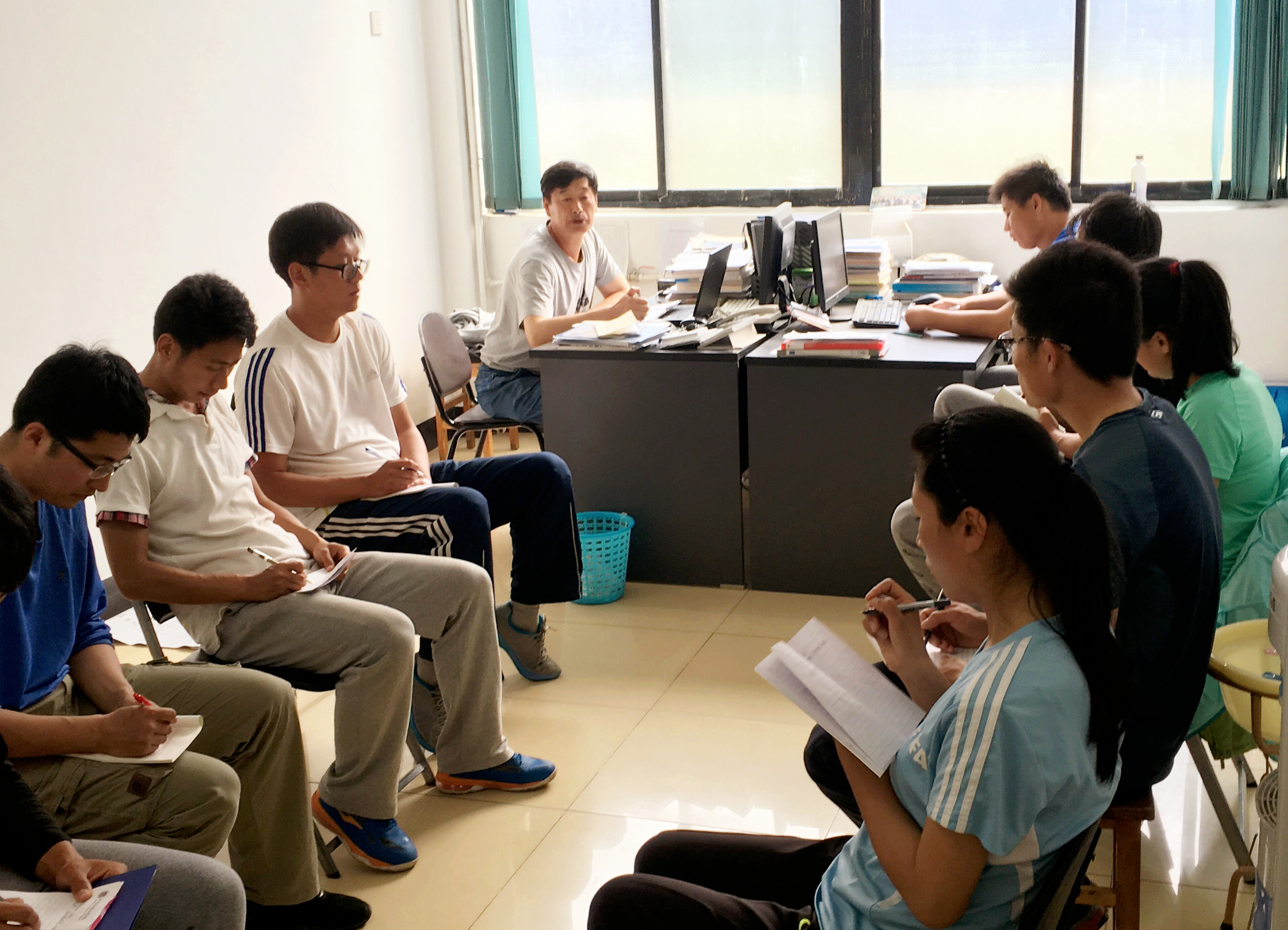 会上体育教研室全体教师围绕体育教学中主体地位意识存在的问题及如何落实学生主体地位进行深入交流与讨论。通过讨论,得出主要存在问题如下:传统的体育教学方式忽略了学生培养目标的多样性;体育教师忽略学生主体地位;体育教师与学生地位不平等难以营造良好的体育学习环境。围绕上述问题,老师们交流并提出以下措施:变革以往的教学理念,培养学生的自觉意识;培养和谐的师生关系;教学目标要体现学生的个性化;要建立学生对学习的信心。最后,杜兴彬主任强调,学生主体地位必须在教师正确的指导下才能很好地建立。