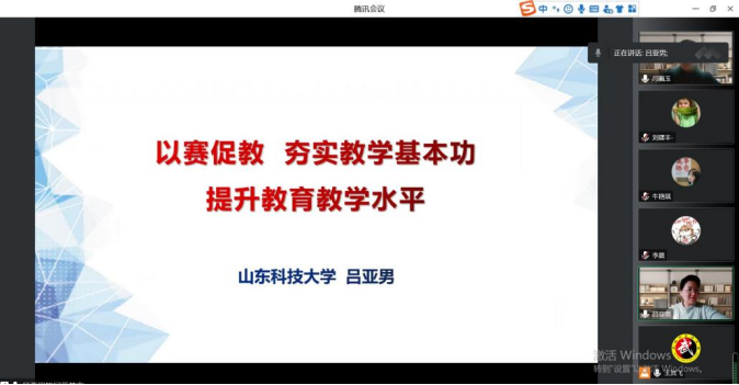 为夯实教师教学基本功,促进教师教学能力提升,11月17日,基础教学部通过腾讯会议,邀请第四届全国高校青年教师教学竞赛理科组一等奖获得者、山东科技大学公共课教学部青年教师吕亚男副教授作了以“以赛促教,夯实教学基本功,提升教育教学水平”为主题的讲座。基础教学部主任助理门顺德教授主持,全体青年教师参加。
