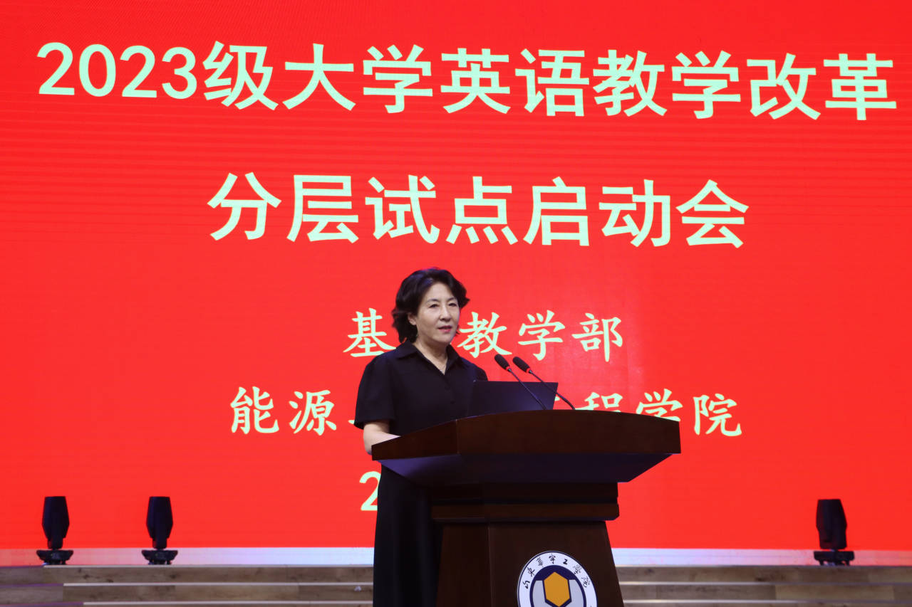 首先基础教学部主任刘瑞平致开幕词,她指出学校实施分层教学,做到因材施教、分类教学,对学生来讲是一种机遇。分层教学的意义在于提升大学英语教学质量,能够让不同层次、不同需求的学生都能获得最佳学习效果其次,外语教研室副主任程雁汇报了近几年大学英语分类教学改革的成效与开展分层教学改革的必要性详细解读了大学英语分层教学的分班原则和管理细则。最后,基础教学部主任助理门顺德做总结讲话。他指出:分层教学的目的是满足学生个性化的需求。改革只有进行时,没有完成时。为了提高学生的学习产出教师创新教学方法,改变传统教学模式,有针对性、目标性地实施分层教学