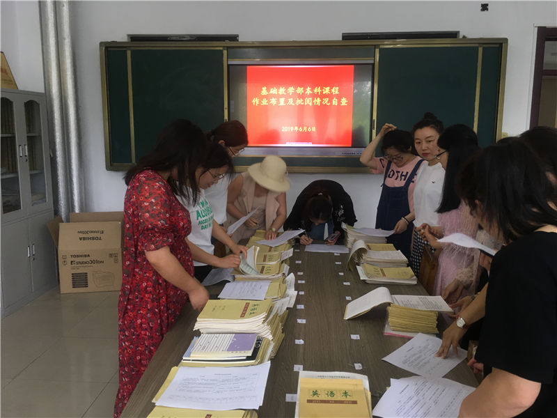 为了落实学校《关于开展2018——2019学年第二学期本科课程作业布置及批阅情况检查的通知》精神,同时也为了进一步提高教师教学质量,完善教学常规工作,培养良好的教风和学风,在接到学校工作安排和教学质量监控与评估中心的相关工作通知后,我部门立即召开了作业检查和批阅的工作会议,认真学习了《山东华宇工学院教师工作规范》中作业布置与批改规范,同时,得到了各教研室老师的高度重视。并于6月6日下午在10#215,部门组织开展了基础教学部本科课程作业布置及批阅情况自查工作。此项工作主要围绕着数学、英语、物理、语文等几大科目展开检查工作,各教研室认真对待,并积极评阅,自查效果明显。