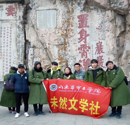 4月2日,为迎接“山东华宇工学院大学生科技文化艺术节”,基础部邵宝文老师指导的未然文学社全体社员集体走在了去往泰山的途中。本次活动自愿参加,完全由学生自己组织,充分展示了华宇学子的良好风貌。