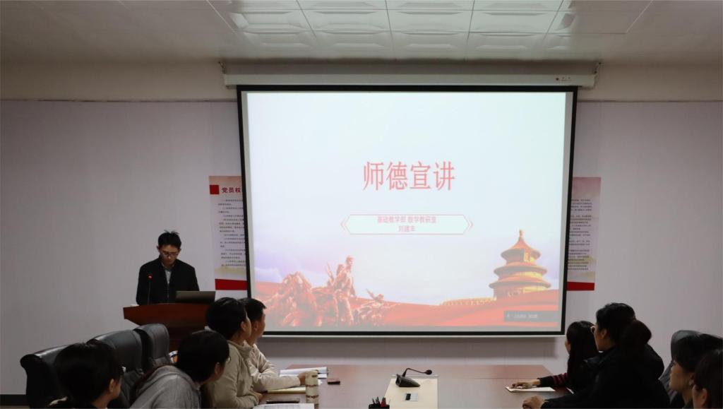 为深入学习贯彻党的二十大精神,强化师德师风宣传教育,弘扬高尚师德风范,根据《山东华宇工学院2023年“师德师风建设月”活动方案》文件要求,基础教学部于11月23日下午在10号二楼党员活动室开展“培根铸魂担使命立德树人建新功”师德宣讲活动,此次活动由来自外语教研室实验中心主任李海军、教师孟雪菲,及数学教研室的教师刘建丰分别进行了宣讲活动。