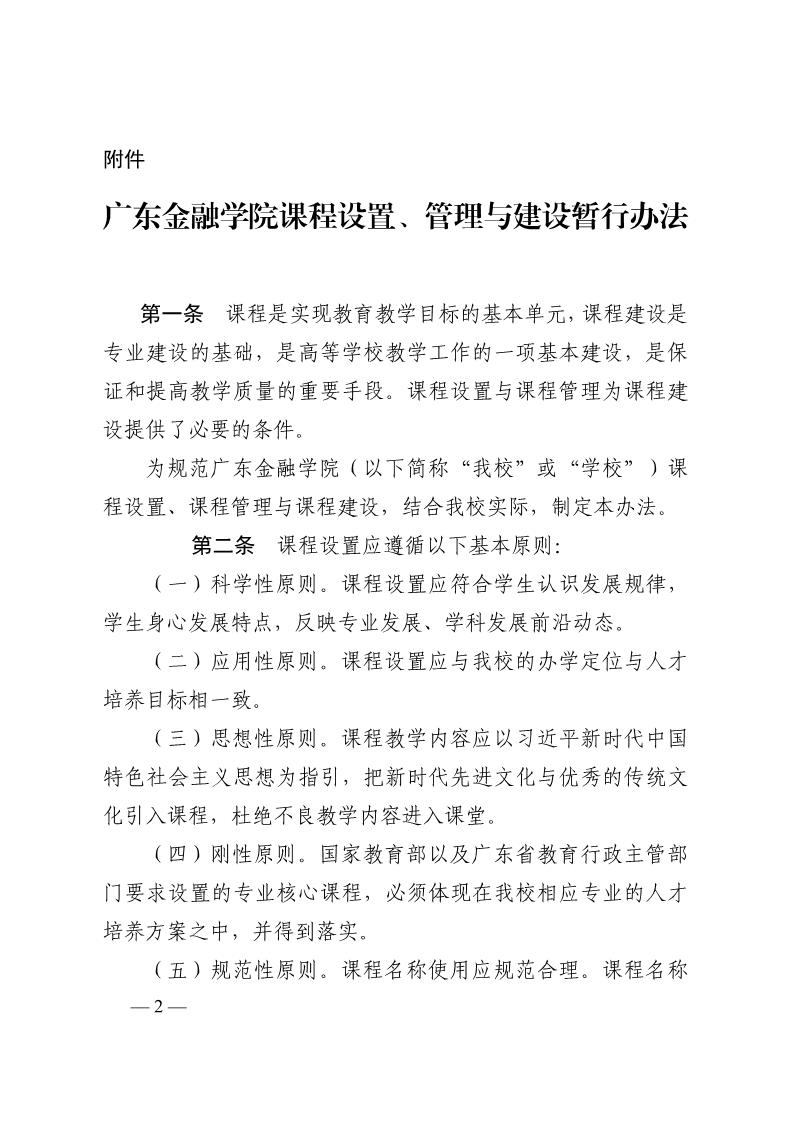 广东金融学院课程设置、管理与建设暂行办法