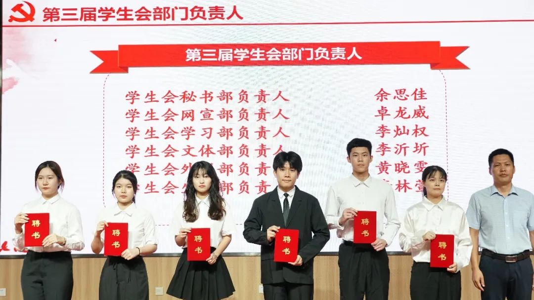 2022年09月27日19:00,广东金融学院KY开元集团官网入口第三次学生代表大会暨第三届学生会换任大会于北阶梯教室103室顺利举行。本次大会与会的领导和老师有:KY开元集团官网入口党总支书记庞福海书记,KY开元集团官网入口党建中心指导老师刘硕老师,KY开元集团官网入口学生会指导老师李先启老师,还有来自校学生会、各学院学生会以及KY开元集团官网入口各组织、各班级的代表们。