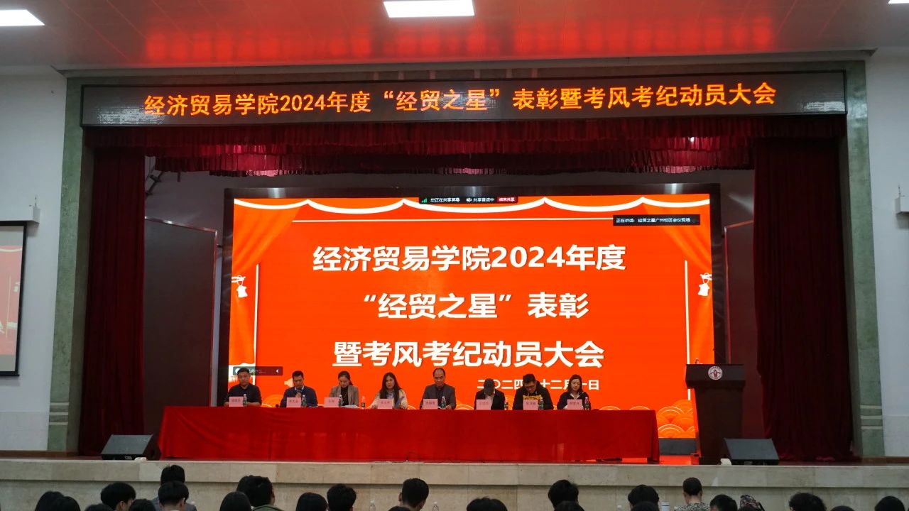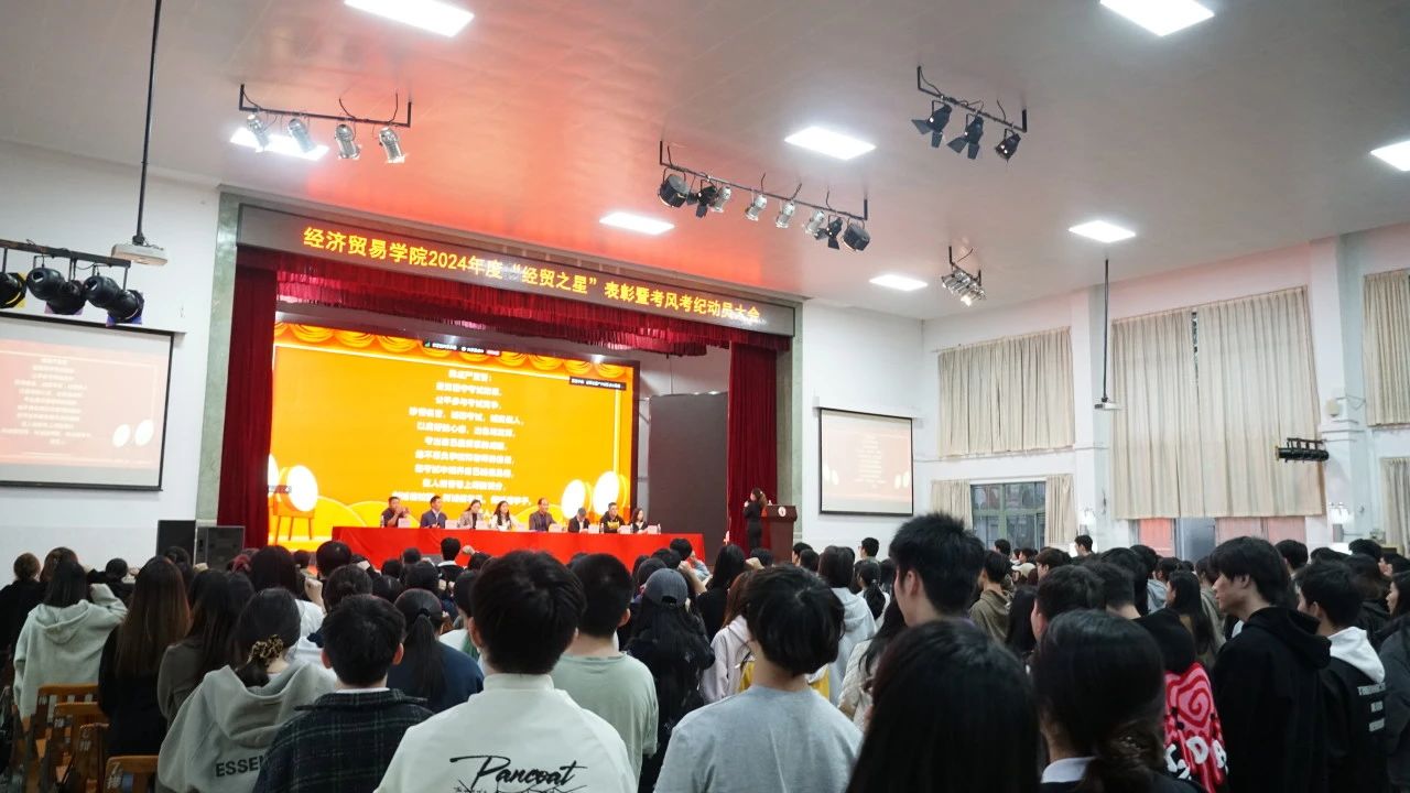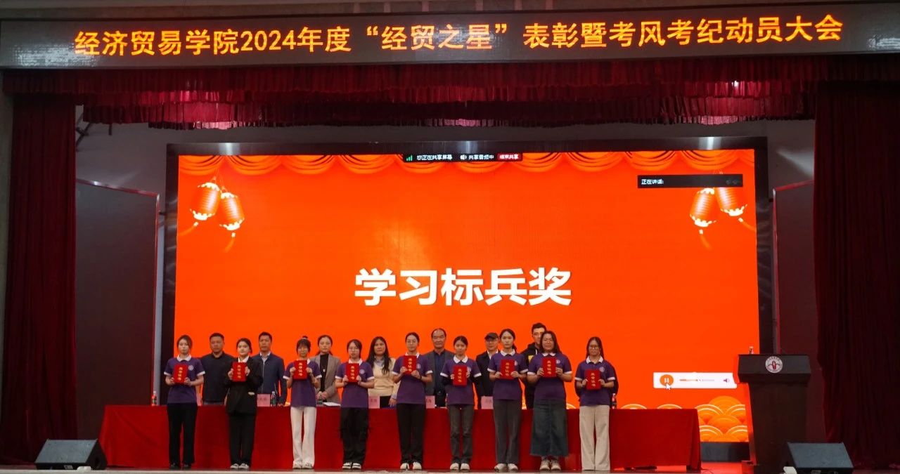 大会在庄严的国歌声中拉开序幕。由李文秀院长宣读《关于表彰2024年度“经贸之星”先进集体和先进个人的决定》。随后,与会领导依次为获奖的先进集体和先进个人进行了颁奖。