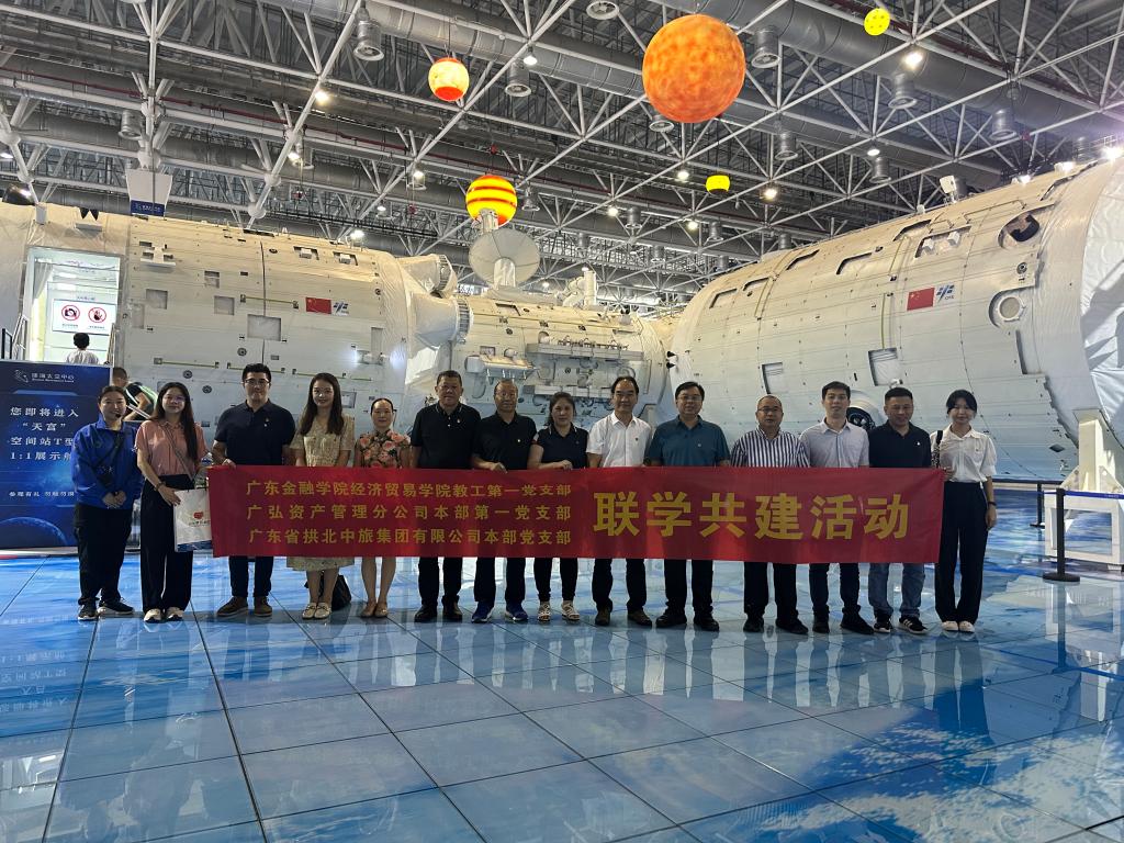 校企双方开展了共建联学的参观学习活动。参观第一站是珠海太空中心,联学队伍先后走入序厅、空间站核心区、航天展区、航空展区、国防展区、无人机表演区、元宇宙展区、专题展区等八大展区近距离、沉浸式参观学习,认真聆听“国之重器”的科普讲解,了解我国航空航天事业的发展历程、重大创新成果和未来发展方向,观摩航天器的模型、航空引擎的样品、飞行模拟器等科技展品,深刻感受我国航空科技的前沿性和发展速度。