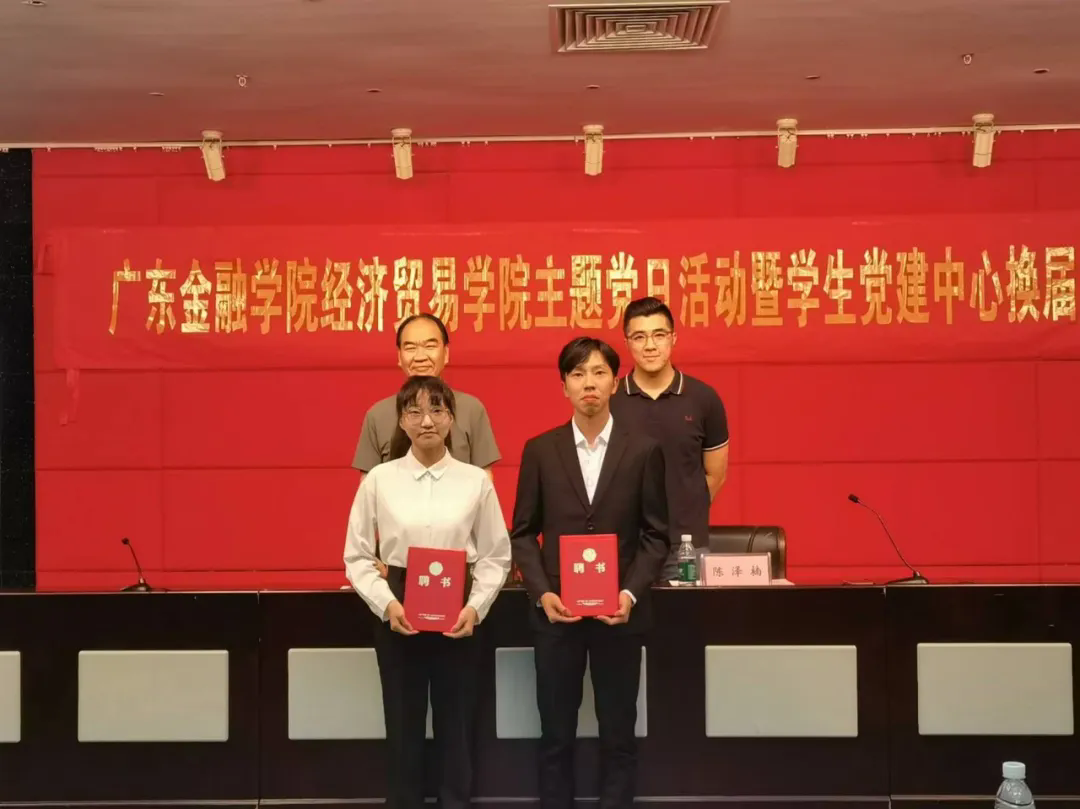 紧接着,大会进行第二项议程——为学生党支部委员颁发荣誉证书和聘书。学院党委书记庞福海和陈泽楠老师为2021级学生党支部委员颁发荣誉证书,为2022级学生党支部委员助理颁发聘书。