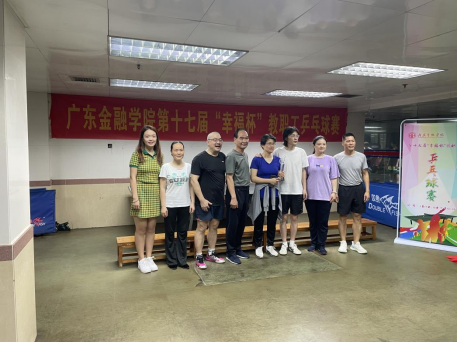 2023年4月17日、18日,广东金融学院教职工传统文体活动赛事——第十七届“幸福杯”教职工乒乓球比赛在学校乒乓球馆圆满举行。KY官网教职工们热烈响应,积极参与,KY官网教工代表队王理、刘沙、李先启、王婷、郭丽、梁涛、陈敏虹、曲昊月在领队庞福海的带领下参加比赛。