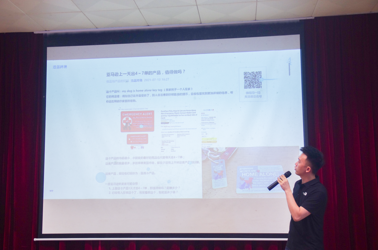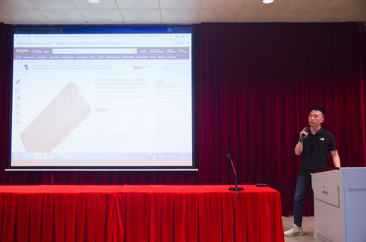 会议伊始,邓斌师兄首先介绍了自己在校和工作经历。而后师兄以亚马逊电商为例,详细地为同学们介绍了该平台的独特优势:发货FBA自动化、近乎零客服,以及他是如何利用这些优势在亚马逊进行蓝海产品的运营。邓斌师兄强调比起商品的出单量,更要重视商品的毛利率。因此邓斌师兄主攻冷门蓝海商品的运营,他指出挑选蓝海商品本质上就是要寻找低竞争度的市场、发现消费者的隐形需求。而利用信息差则是最轻松、竞争度最小的电商模式。