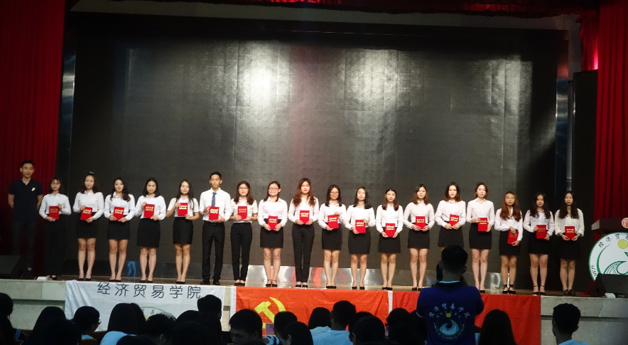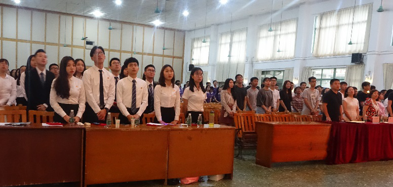 2018年6月8日下午4:40,广东金融学院KY开元集团官网入口第一届第二任团学学生组织换任大会在大礼堂顺利召开。出席本次大会的领导老师分别有经济贸易院党总支书记李玲玉、经济贸易院党总支副书记钟兰、KY开元集团官网入口辅导员曾晓思老师、陈玮鸿老师。与会的还有校团委、校学生会以及各兄弟院团总支、学生会的代表。