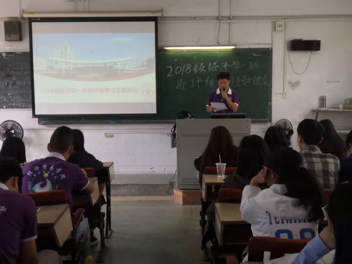 10月28 -31日,经贸学院各班自选时间段,在北教学楼或7栋教学楼的课室召开了“迎评估,促学风”主题班会。各班班长组织同学们认真学习统一制作的审核评估PPT内容,包括学生应掌握的审核评估相关知识、遵守的纪律、行为规范和行为要求等。紧接着,各班班长宣读《争创优良学风,迎接审核评估》学风建设倡议书。在场的同学们认真聆听,并在《迎评估,促学风》承诺表上签名,以此承诺将严格遵守学校有关规章制度,以饱满的热情和积极向上的精神风貌迎接教育部本科教学工作审核评估。