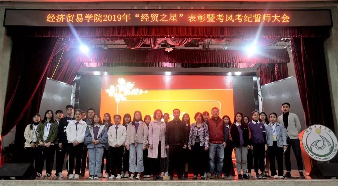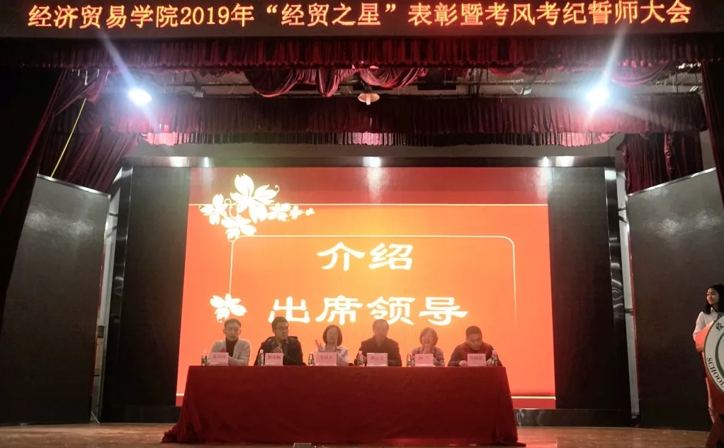 2019年12月19日19:30,KY开元集团官网入口“经贸之星”表彰暨考风考纪誓师大会在南苑大礼堂顺利举行。KY开元集团官网入口卿前龙院长,党总支李玲玉书记,党总支钟兰副书记,曾晓思老师,陈泽楠老师,陈玮鸿老师出席了本次大会。