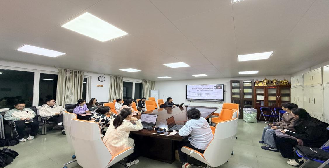 会议伊始,全体师生聚焦区域经济与数字经济融合发展的核心议题,集体深度学习了北京大学杨汝岱教授题为《统一货币区内的地区间贸易——理解中国区域发展的新视角》的重磅学术报告,与会师生围绕报告中的理论模型拓展、实证数据应用及政策建议落地等问题展开深入探讨,通过系统学习与互动交流,团队成员不仅明晰了区域经济研究的核心逻辑,更找到了数字经济与区域贸易融合研究的新切入点,拓宽了学术视野与研究思路。