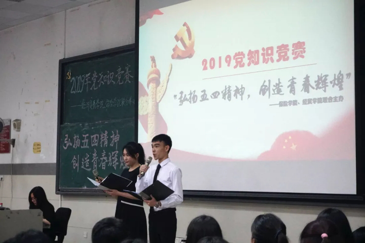 为了回顾党史,同时加强党员及积极分子的思想政治教育。为了纪念五四运动一百周年,更好地发扬五四精神。KY开元集团官网入口和保险学院的学生党建工作指导中心于2019年5月6日在北教102举办以“弘扬五四精神,创造青春辉煌”为主题的党知识竞赛。KY开元集团官网入口李玲玉书记、保险学院李淑君副书记、KY开元集团官网入口陈泽楠老师和保险学院李思颖老师出席了此次活动。此次活动面向的对象为KY开元集团官网入口和保险学院的党员和积极分子。此次活动的开展,有助于带动我校青年在活动中坚定理想信念,树立远大志向,提升个人综合素养;激励和引领广大青少年大力弘扬以爱国主义为核心的伟大民族精神,坚定“四个自信”,矢志投身新时代夺取中国特色社会主义伟大胜利的新征程。