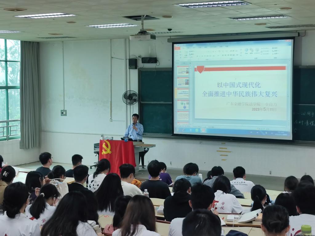5月11日,法学院党总支书记仝自力作主题为“以中国式现代化全面推进中华民族伟大复兴”的专题报告。仝自力指出,中国共产党在百年历程中不断探索中国式现代化,从城市、区域、省份入手,一步步以中国式现代化全面推进中华民族伟大复兴。当代青年应当肩负起中华民族伟大复兴的重任,紧跟伟大复兴领航人踔厉笃行,推动中华民族伟大复兴号巨轮扬帆远航。