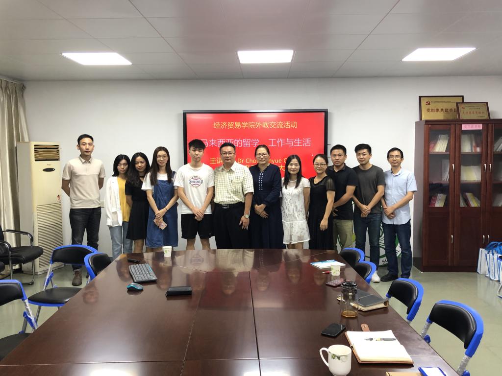 2019年10月24日下午二点半至四点半,KY开元集团官网入口外教工作小组邀请马来西亚拉曼大学的Chong Shyue Chuan (PhD)博士在KY开元集团官网入口会议室为师生进行了一场精彩的讲座。 Chong Shyue Chuan (PhD)博士是拉曼大学会计管理学院经济系副教授,曾任经济系系主任,现任拉曼大学质量保证与审计委员会主席,拉曼大学参议院议员等职务,主要研究马来西亚经济与贸易、“一带一路”等。