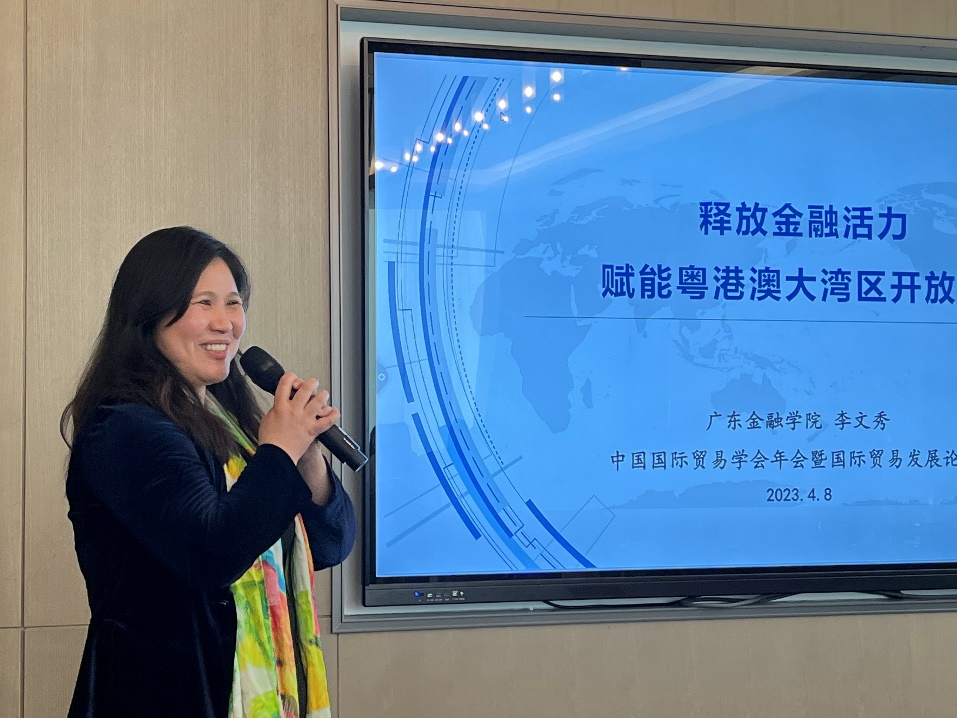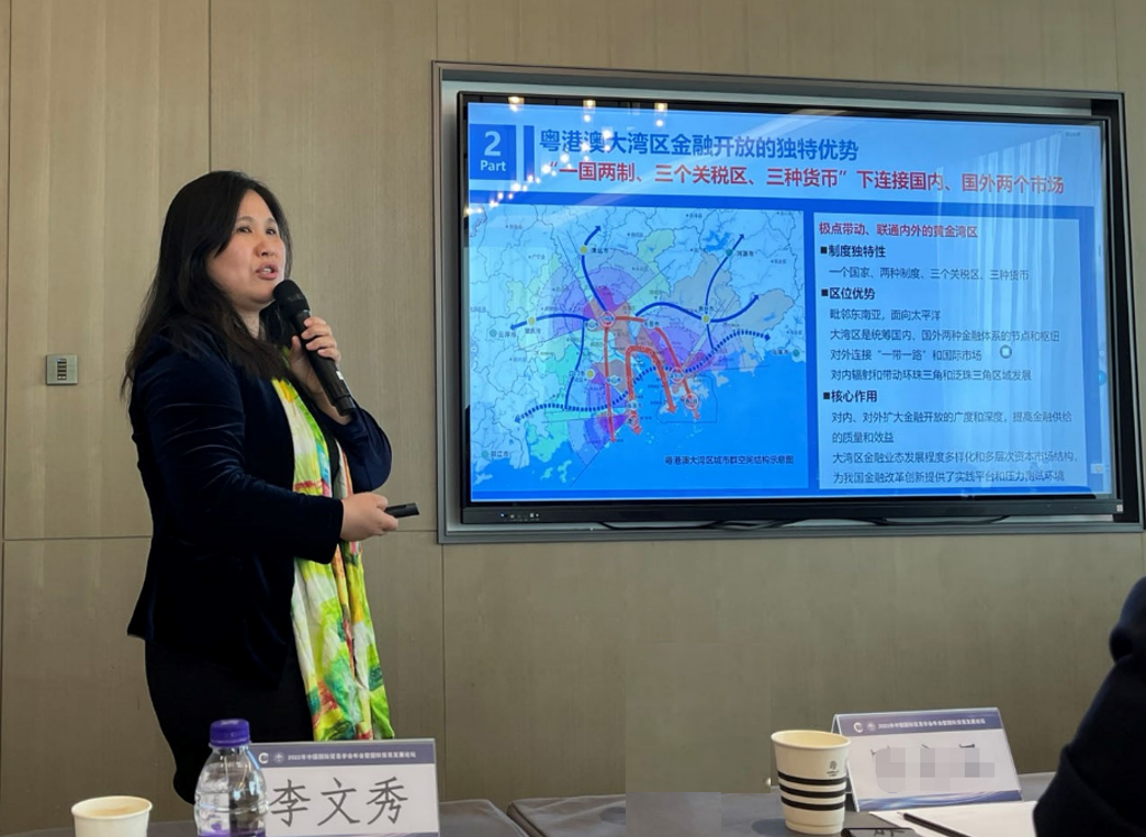 李文秀院长应邀在“高水平建设粤港澳大湾区开放型经济”分论坛作了题为《释放金融活力,赋能粤港澳大湾区开放发展》的主题演讲,演讲主要从合作背景、独特优势、典型特征、发展展望四个方面,全面综合地对粤港澳大湾区金融开放与合作进行介绍。演讲内容丰富、信息量大,受到与会专家、学者、政企代表的高度关注,并引发在座参会人员的热烈探讨。李院长当天下午也与其他参会嘉宾、学者进行了广泛的学术交流。