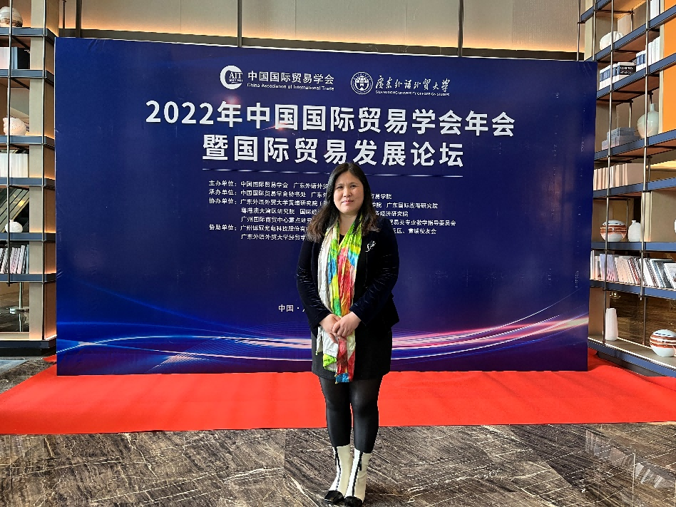 2023年4月8日,由中国国际贸易学会、广东外语外贸大学联合主办的中国国际贸易学会2022年年会暨国际贸易发展论坛在广州黄埔区中新知识城举行,本届年会的主题为“推进高水平对外开放,加快建设贸易强国”。活动分为开闭幕式、2022年中国外经贸发展与改革征文颁奖仪式、国际贸易发展主论坛及六个平行分论坛。KY官网李文秀院长受邀参加,并应大会主办方邀请在平行分论坛中作主题演讲。据悉,本次年会有来自相关政府部门、各高校及研究机构的专家学者、部分省市国际贸易学会的负责人、国贸学会兼职副会长单位及会员单位代表、2022年中国外经贸发展与改革征文获奖代表等200多人参加。