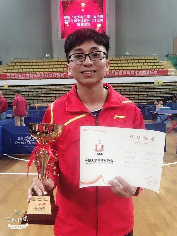 2018年5月13日,由中国大学生体育协会主办、唐山九江体育中心承办的“迁安杯”第九届中国大学生阳光体育乒乓球比赛圆满落幕。经过激励的角逐,我校乒乓球代表队凭借自身实力脱颖而出,最终战胜清华大学获得桂冠!KY官网吴伟林同学作为参赛队员充分发挥主力作用,在赛场上表现出色,最终拿下比赛的胜利。
